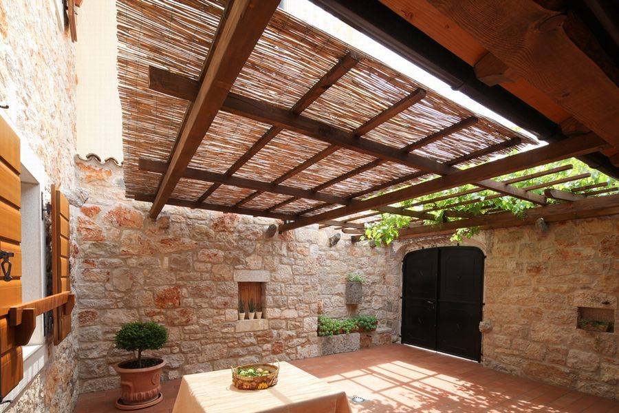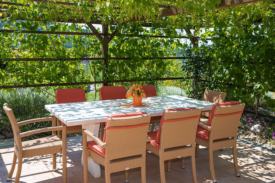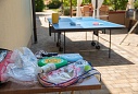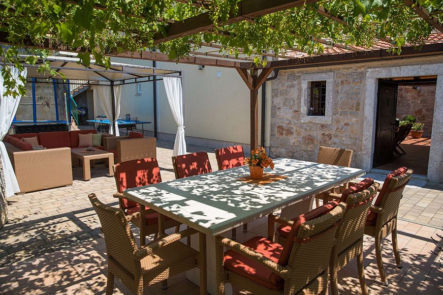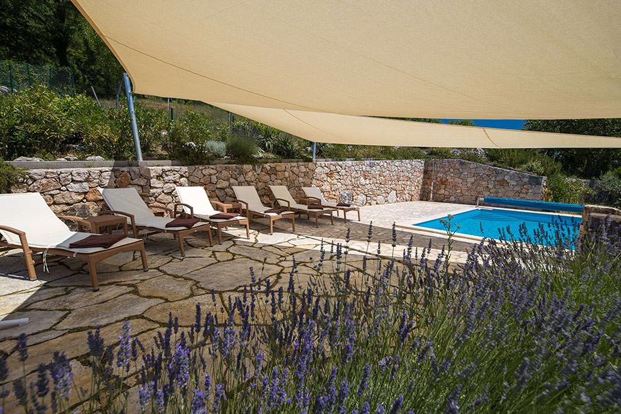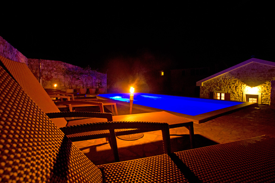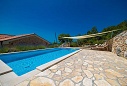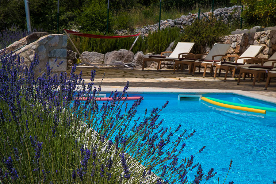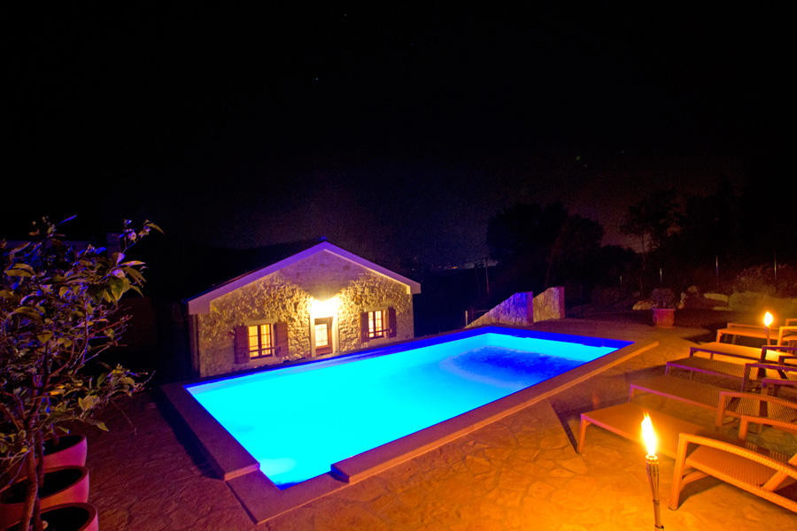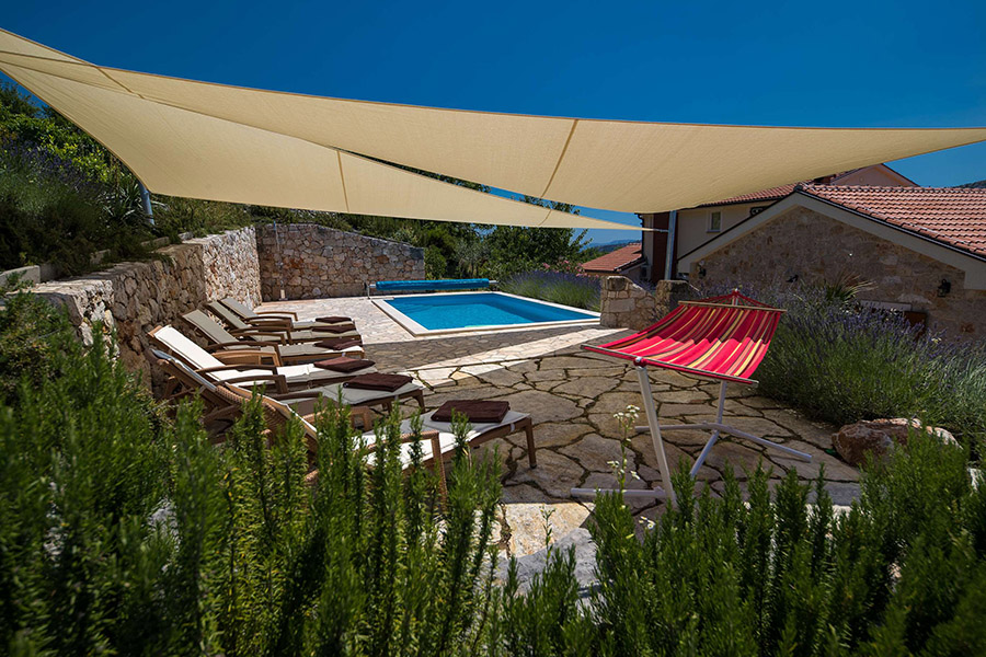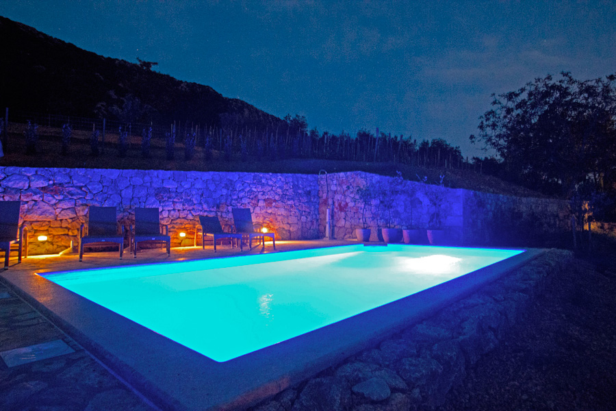 Von der oberen Etage erreichen Sie über den Flur auch den hinteren Teil des Hauses, wo sich der von einem Obstgarten und einem kleinen Weinberg umgarnte Pool befindet. Dort stehen Ihnen eine Dusche mir warmen Wasser, Liegen mit Auflage, Sonnenschirme, Poolhandtücher zur Verfügung. Gartenmöbel sind vorhanden.