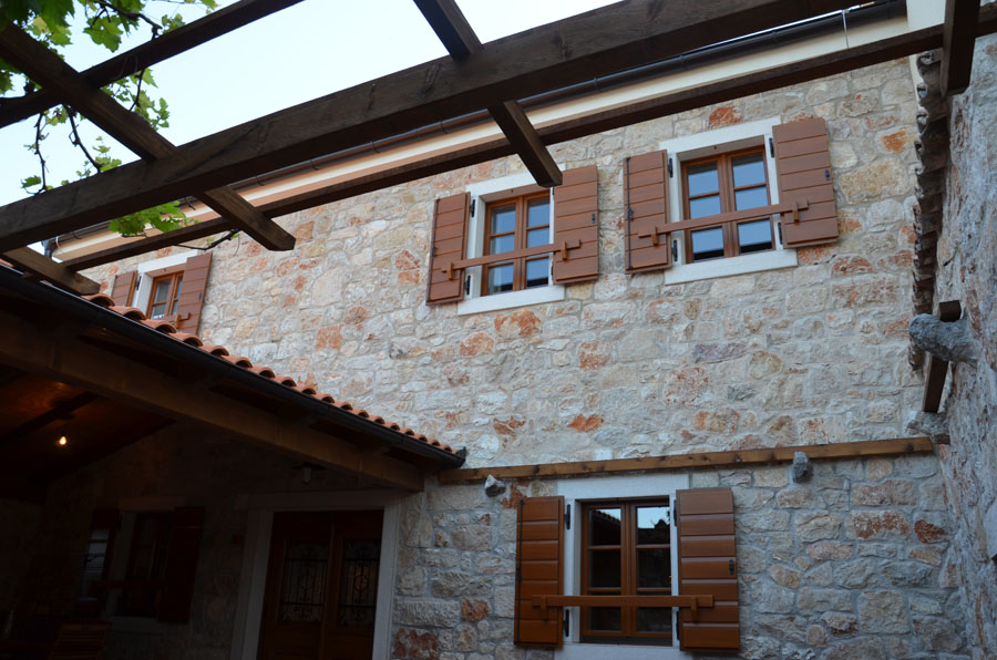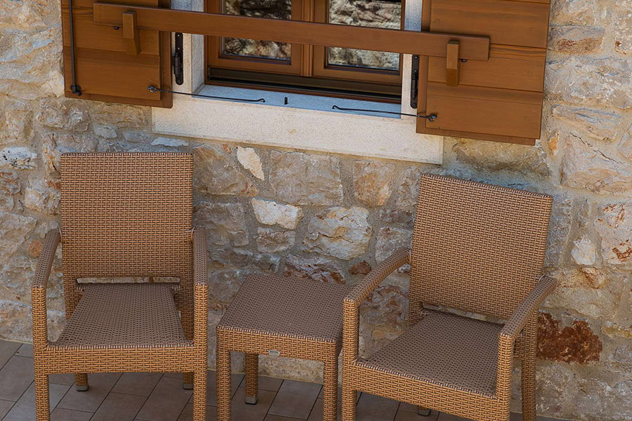 Die Villa Vallis hat eine Wohnfläche von ca.150 m², erstreckt sich auf zwei Etagen mit Platz für 6 Personen und wurde mit viel Liebe zum Detail mit einer Mischung aus rustikaler und moderner Architektur gebaut, sie ist sehr komfortabel , exclusiv und mit hochwertigen Materialien eingerichtet. Ein Außen-Pool mit 7x 3,5 m oberhalb der Villa komplettiert diese sehr schöne Ferienunterkunft. Beim Betreten des Grundstücks gelangen Sie in den geräumigen und teilweise überdachten Innenhof mit einem großen Esstisch, einem Grillkamin und einer Sommerküche. Eine Tür führt vom Innenhof zu einer Sitzecke in den Garten und weiterhin über Treppen zum Pool. Die zweite Tür führt Sie in das geräumige Haus.