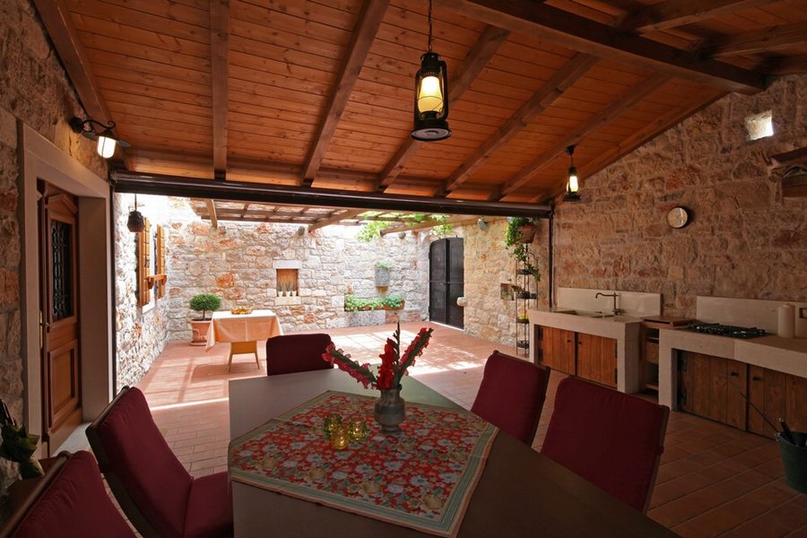 Die Villa ist über 120 Jahre alt (1887) und wurde komplett renoviert und restauriert. Die Möbel und Holzarbeiten im Haus wurden, aus Massivholz, von Hand gefertigt. Die Küchenspüle ist aus einem massiven behauenen Steinblock. Das gemütliches Wohnzimmer hat einen Kamin und ein Weinregal. Die Villa verfügt über einen ca 50 m² , teilweise überdachten, Hof mit Sommerküche und Grillkamin. Es gibt für jede Tageszeit eine Terasse (3). Die Wasserqualität des Pools wird per Computer überwacht. Direkt am Pool gibt es eine Dusche mit warmen Wasser. Außerdem gibt es eine Obstwiese und einen kleinen Weinberg.